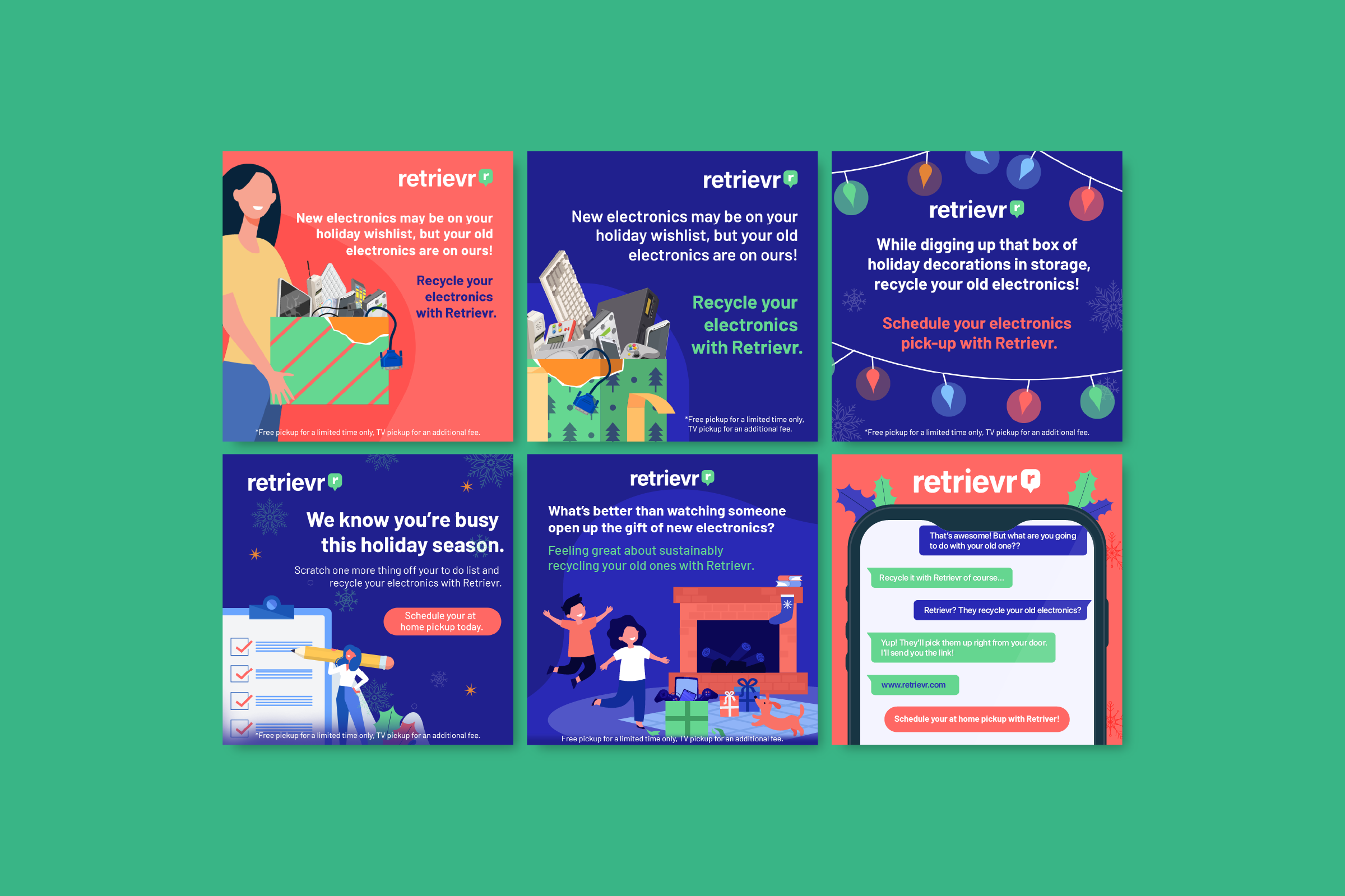 While working at BerlinRosen in NYC, I created several print and digital ads for Retrievr, a company that provides at home pickup of electronics for recycling in Denver and the Greater Philidelphia area.