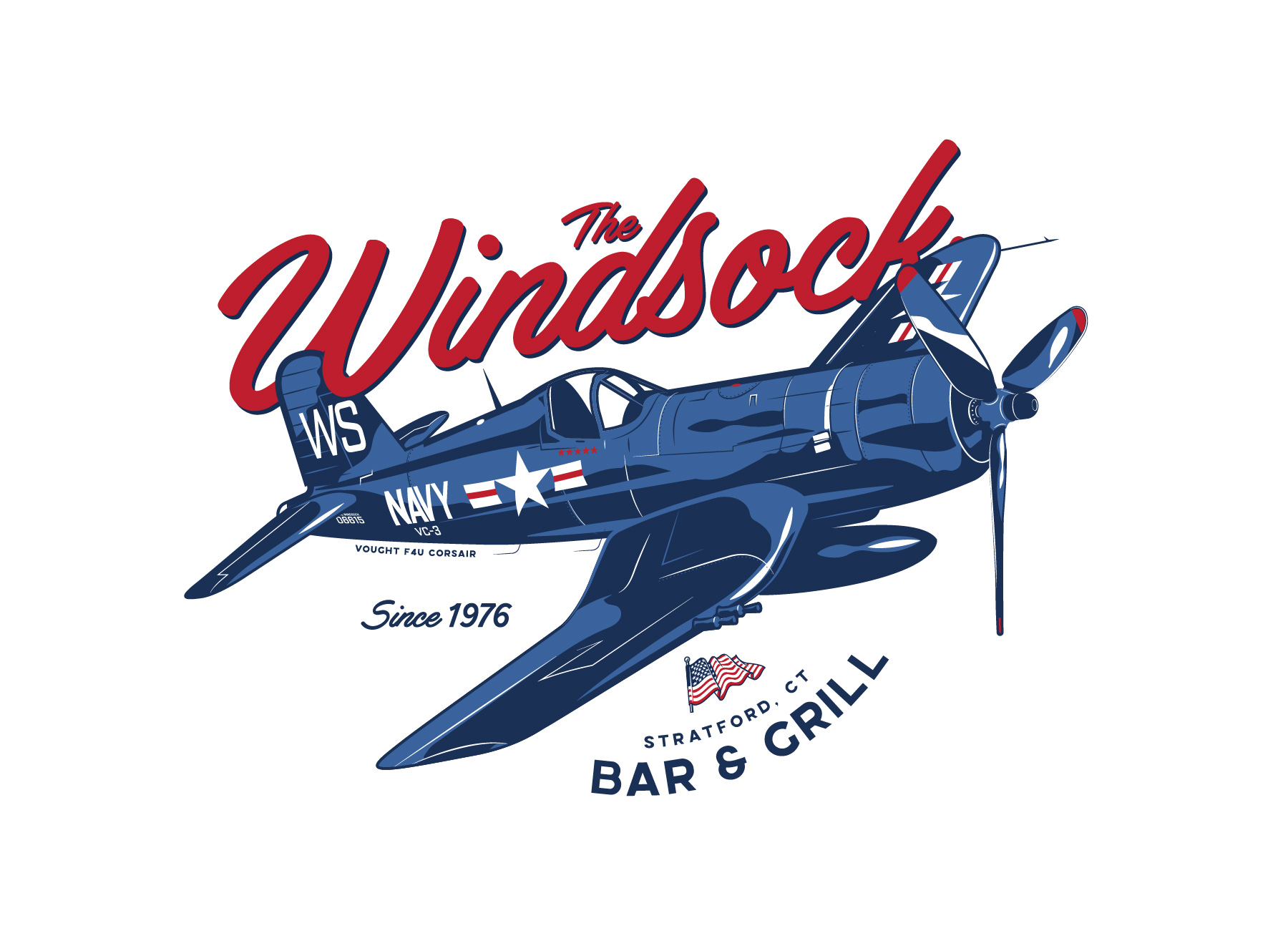 To date, I‘ve created three custom illustrations and shirt designs for The Windsock Bar & Grill, located at Sikorsky Airport in Connecticut. This aviation themed family-owned and operated bar has been around since 1976, and typically always had some shirts and hoodies for sale, but nothing really caught fire. With the new designs, sales have increased ten-fold and have been a local hit.